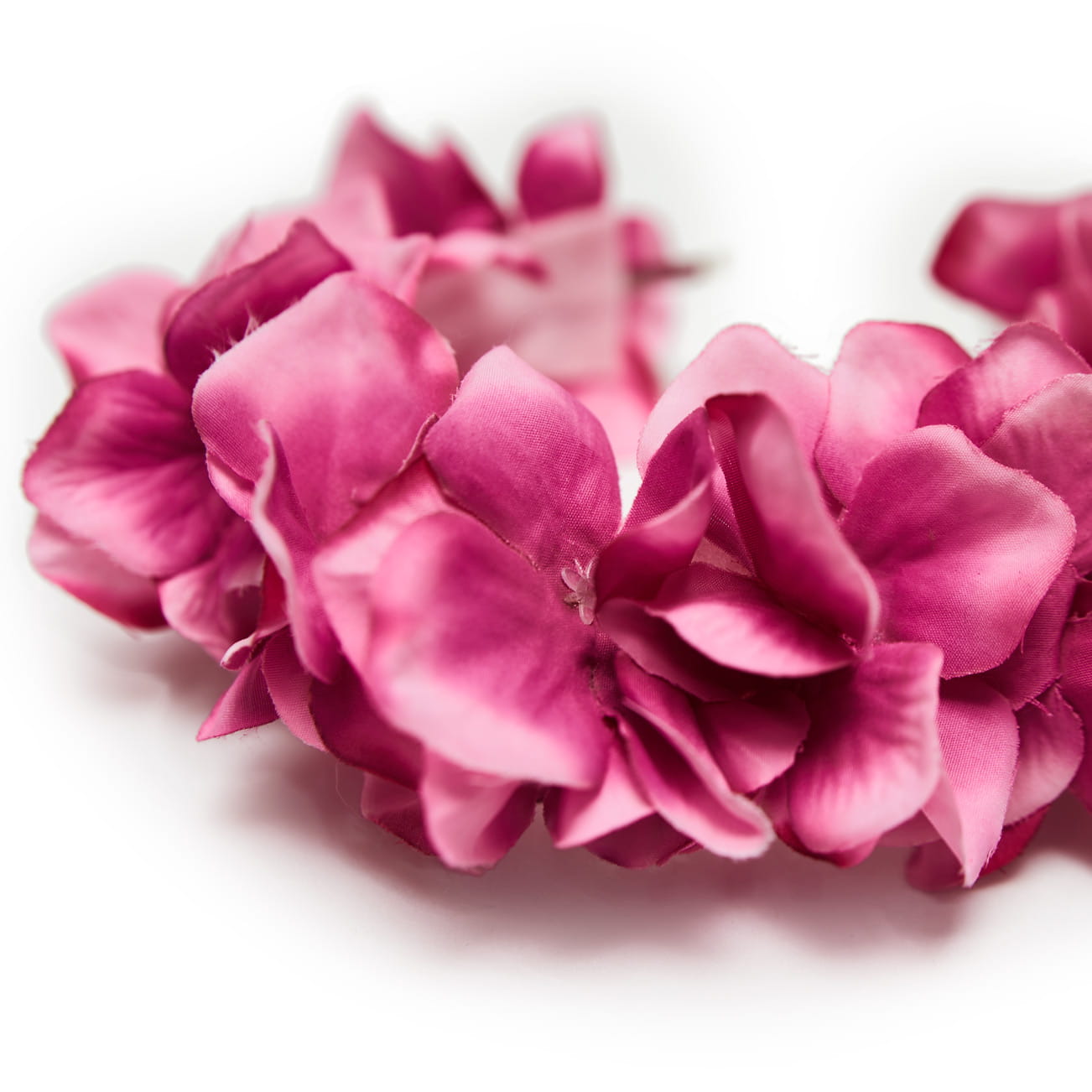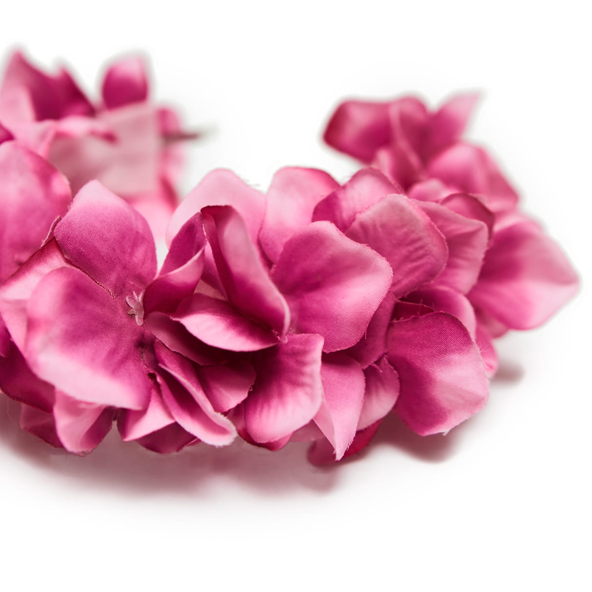 Käsitööna valmistatud  kunstlilledest juuksepärg metallsel peavõrul.