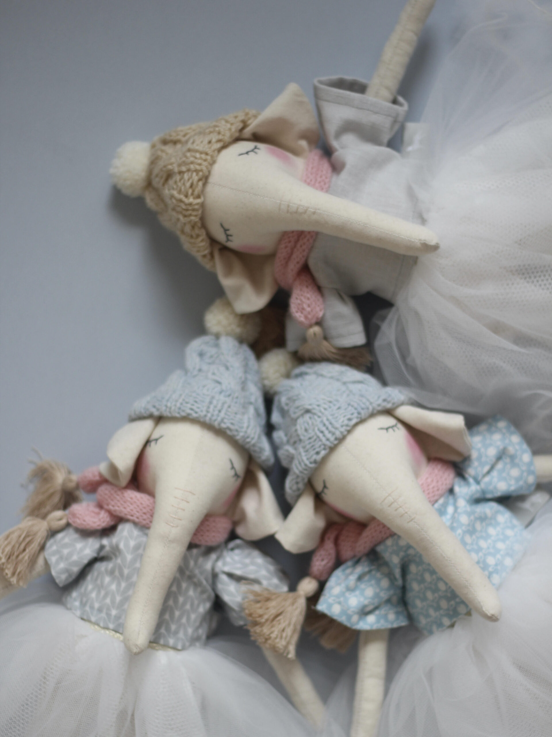 Ta on tehtud pehmest puuvillast, kuid täidetud ka pehme sisuga, et nukk hoiaks vormi.