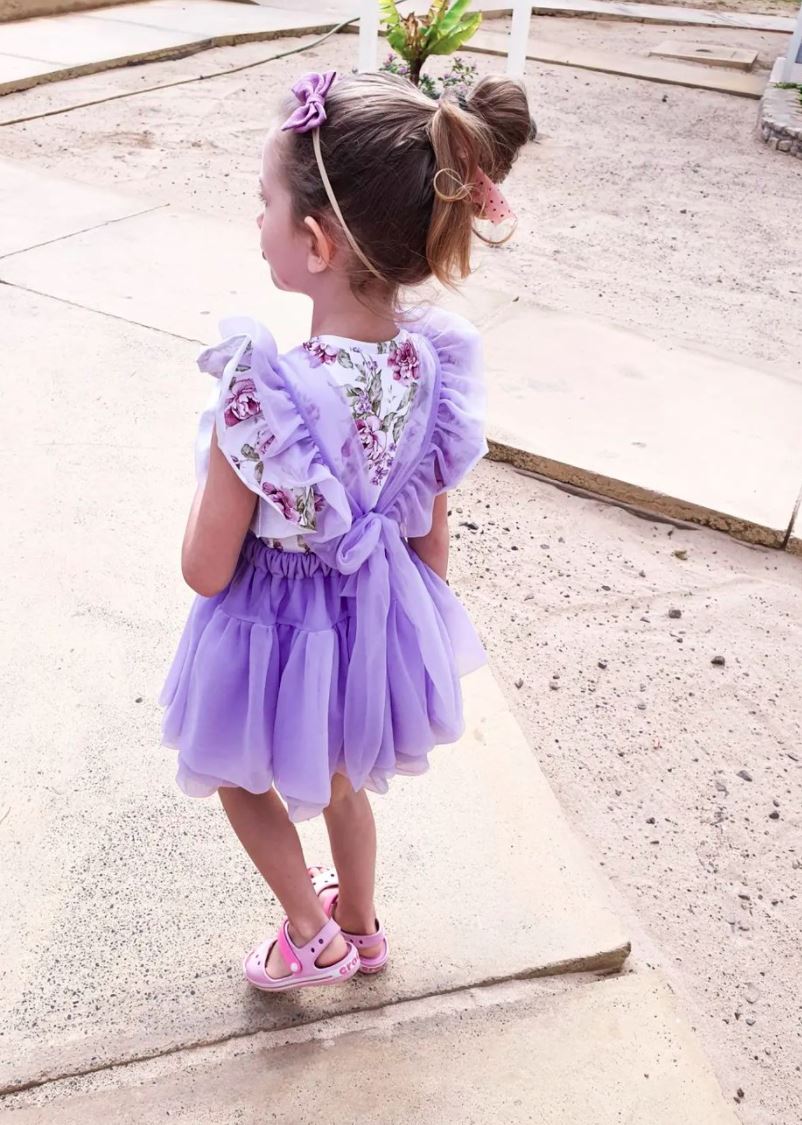 Imeline tüllist pihikseelik, millel on kihiline seelikuosa. Lisatud on mitu kihti tülli, et seelik hoiaks kohevust. Õlapaelad on satsiga ning reguleeritavad ja seotavad seljal lipsuks. Esiosal kaunistuseks samast kangast lips.