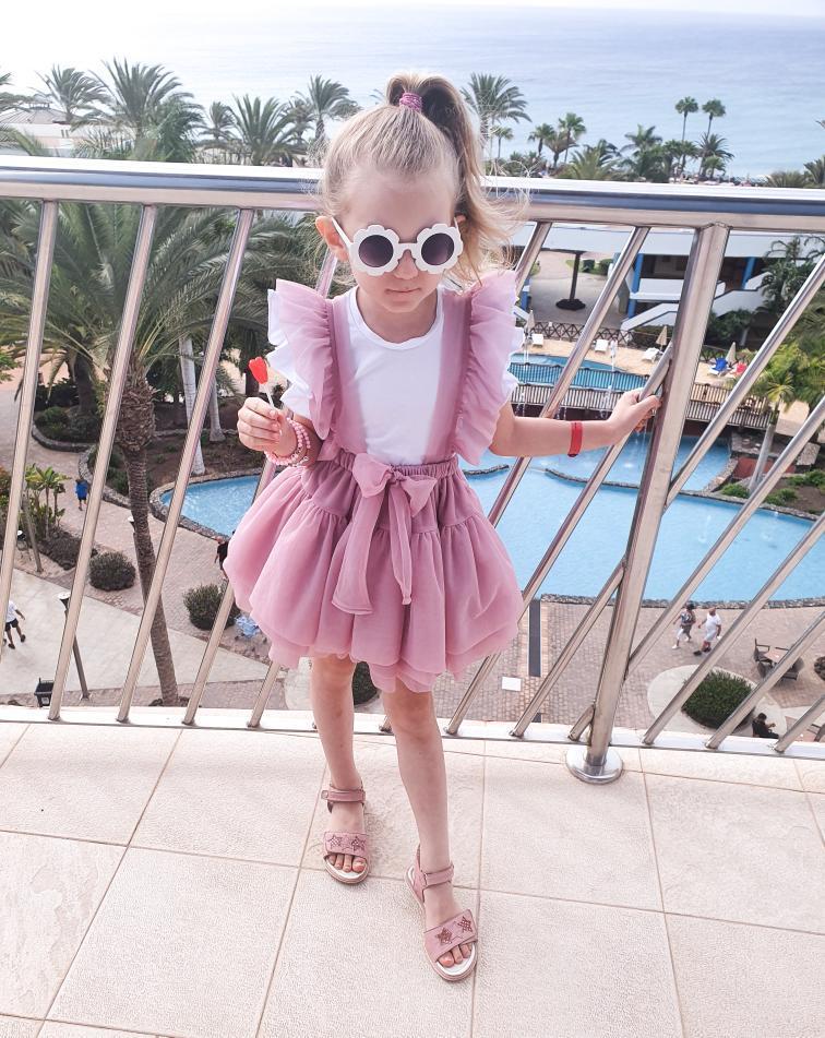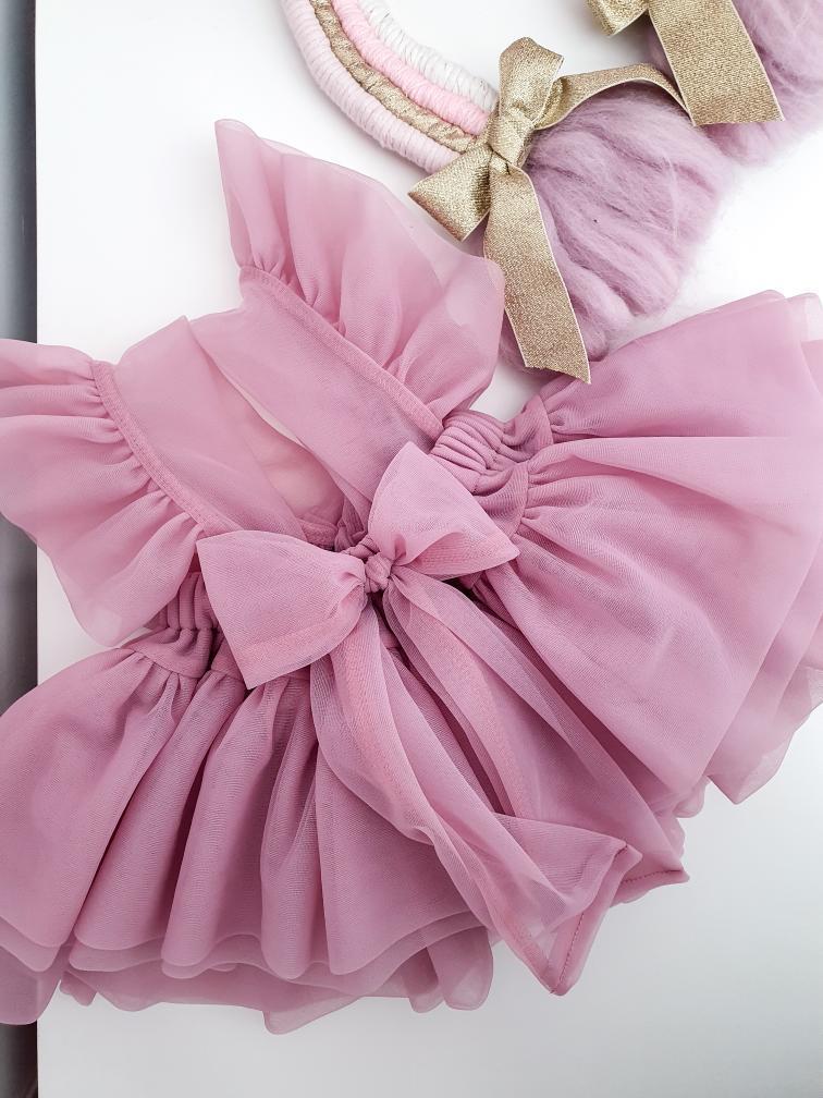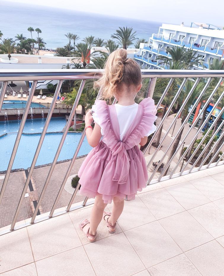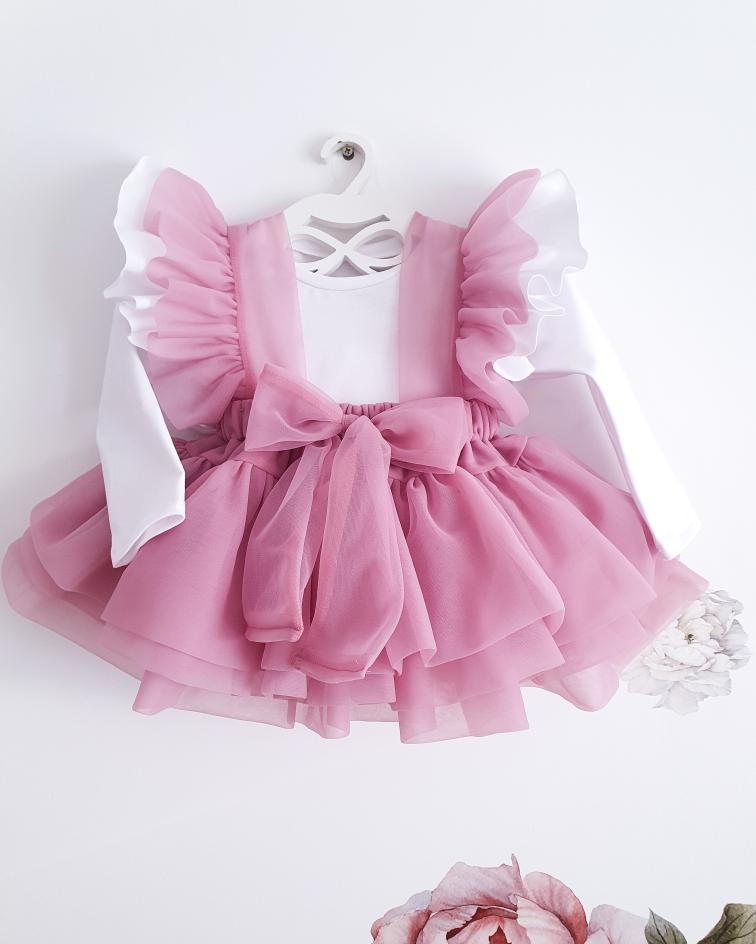Imeline tüllist pihikseelik, millel on kihiline seelikuosa. Lisatud on mitu kihti tülli, et seelik hoiaks kohevust. Õlapaelad on satsiga ning reguleeritavad ja seotavad seljal lipsuks. Esiosal kaunistuseks samast kangast lips.