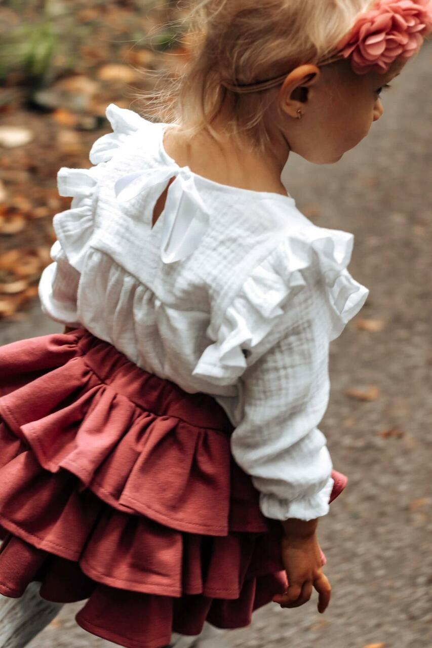 Pikkade varrukatega valge puuvillane pluus.