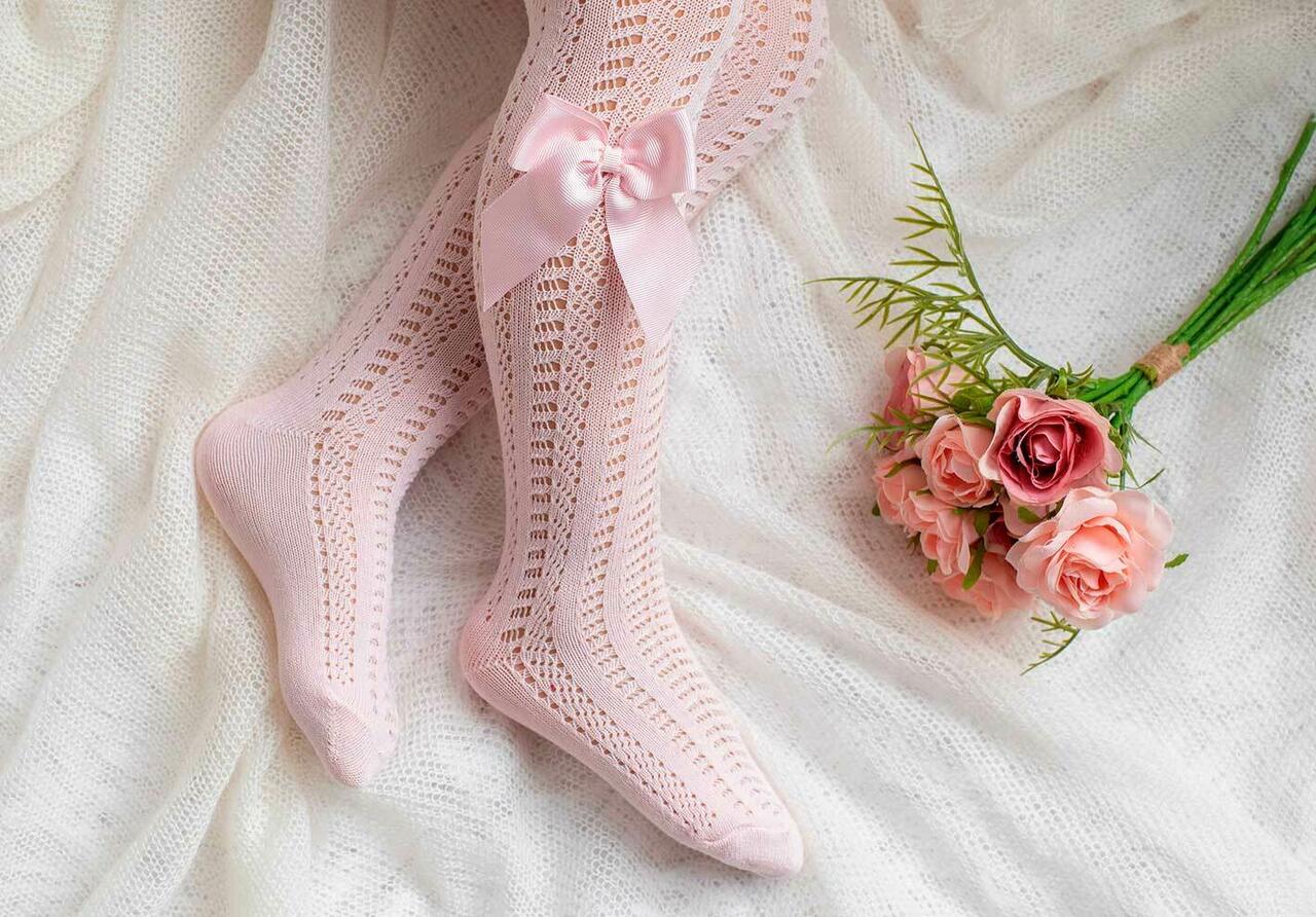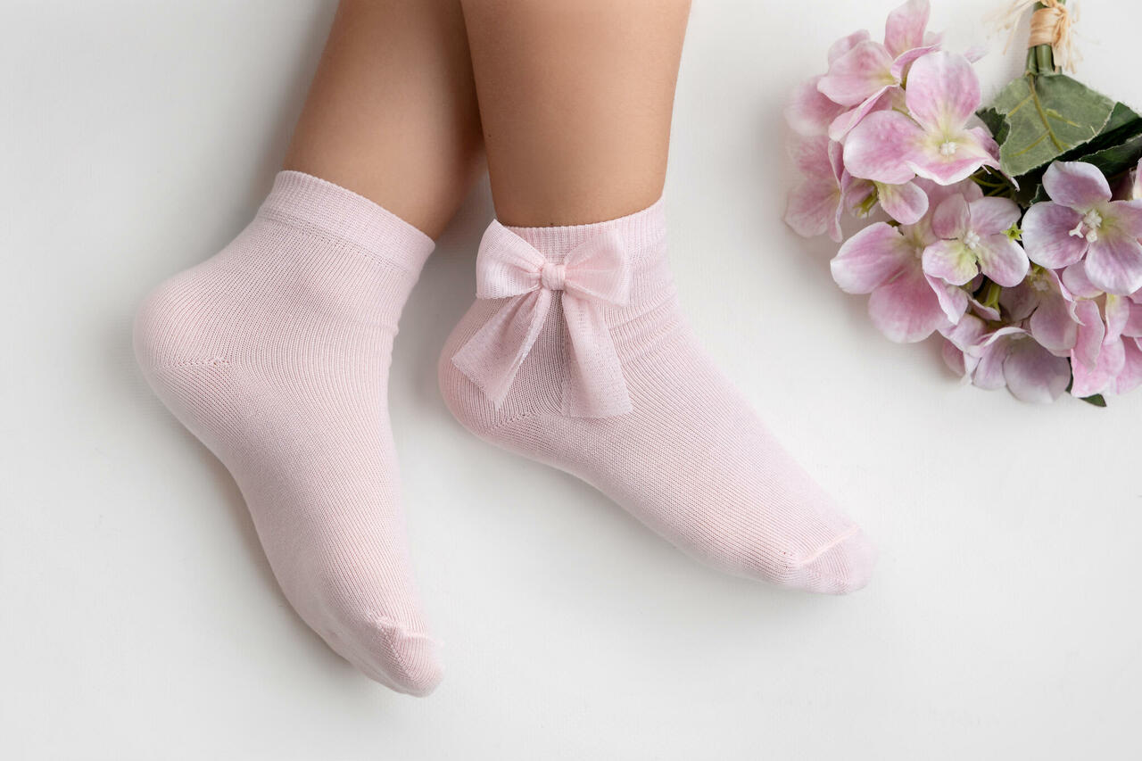Armsad beebiroosad õhukesed sokid, millel on küljel kaunistuseks tüllist lips.